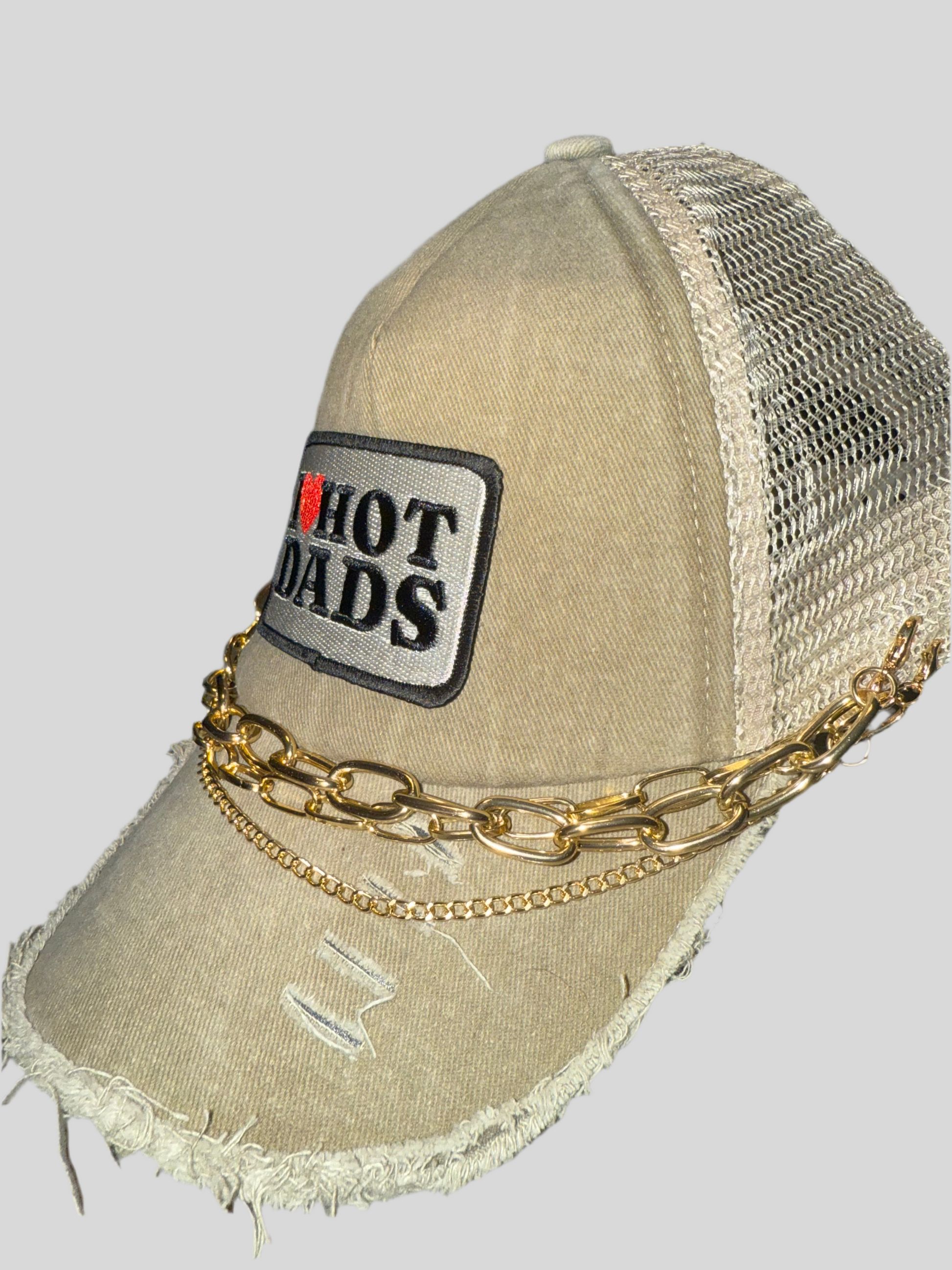 Sending love to all the daddies out there <3 this distressed hat is adjustable and comes with three removable chains.