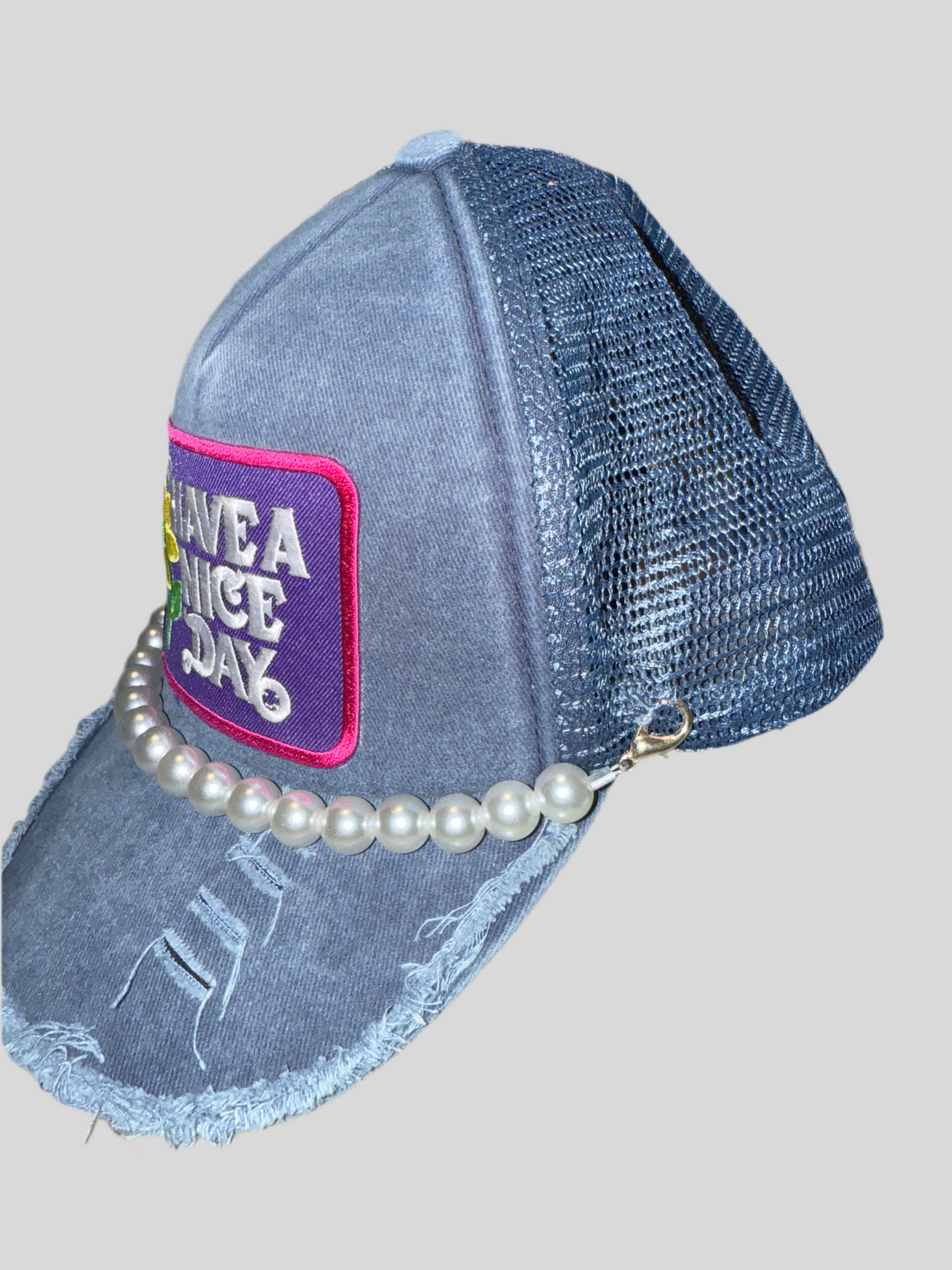Make everyone’s day with this adjustable hat decorated with a detachable chain.